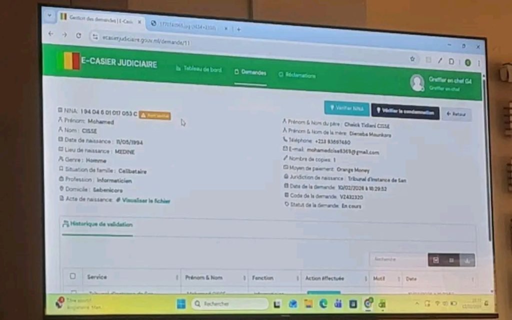Ce mardi 10 février restera gravé dans l’histoire administrative du Mali. Le ministère de la Justice et des Droits de l’Homme a procédé au lancement officiel de la délivrance en ligne du casier judiciaire et du certificat de nationalité, marquant ainsi un tournant numérique sans précédent pour l’administration malienne.