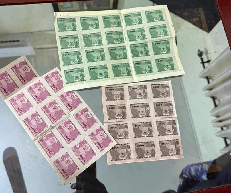 Les perquisitions effectuées ont abouti à la saisie de plus de six cents (600) vignettes fiscales automobiles contrefaites, au titre des années 2025 et 2026, de plusieurs dizaines de timbres fiscaux ainsi que de divers cachets. La valeur des objets saisis est estimée à plusieurs dizaines de millions de francs CFA.