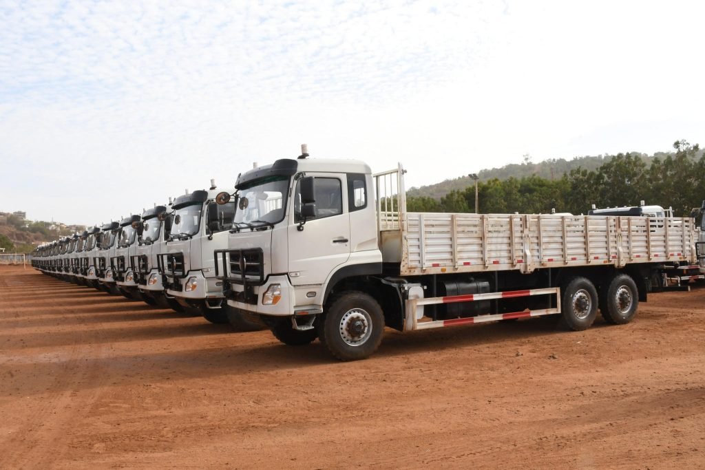 Les véhicules remis sont de marque Dongfeng, reconnus pour leur robustesse et leur endurance dans des environnements difficiles. Chaque camion dispose d’une capacité de transport variant entre 60 et 80 places, selon l’usage opérationnel.